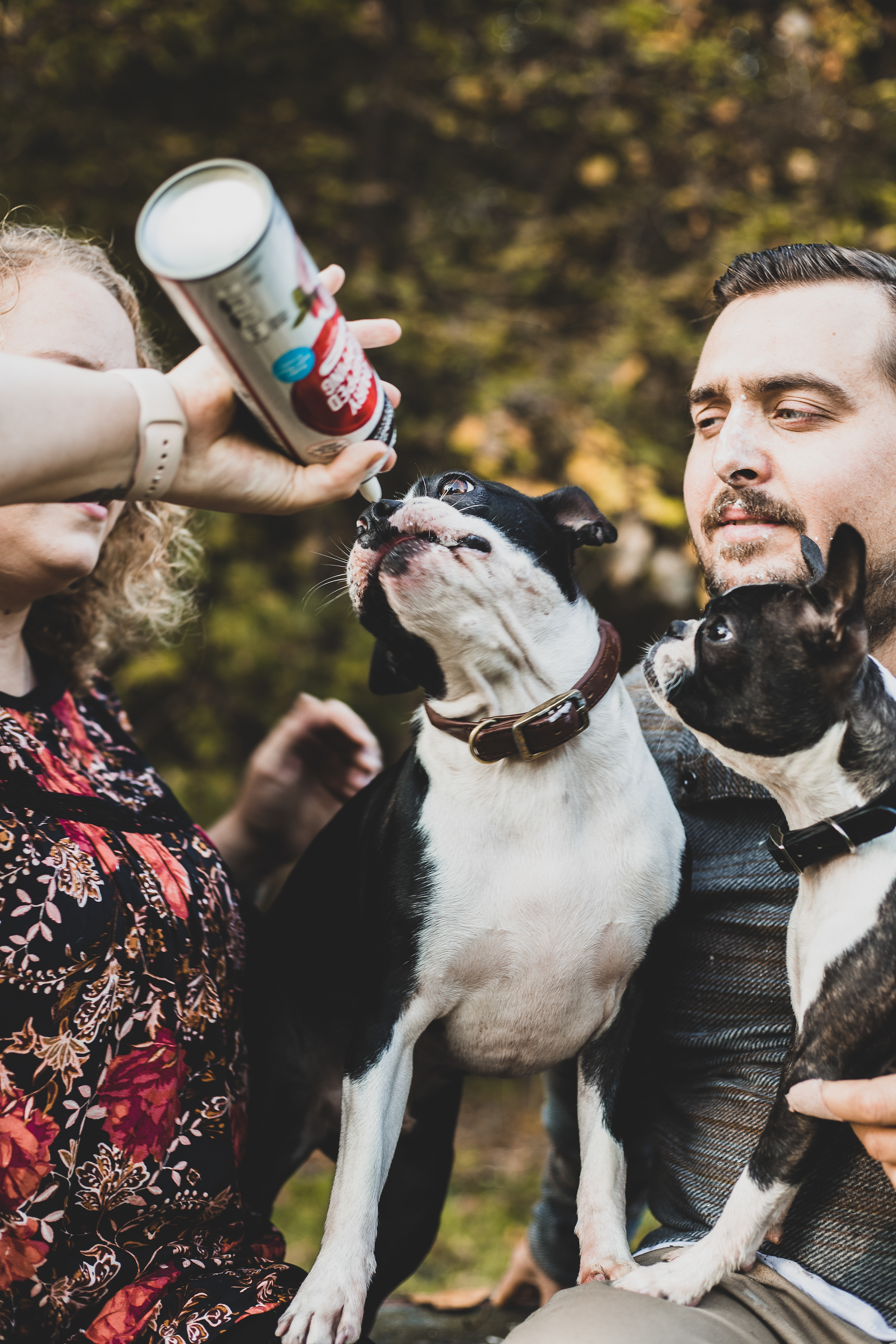 Despite their crazy energy, Olive and Pickle were very well behaved and most importantly, photogenic af. They are sooo stinkin' cute. Our session ended with a Whip Cream fight at a picnic table and the dogs were thrilled, Jonathan though not so much.